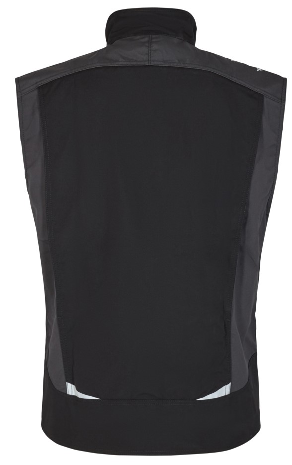 Functional service vest with many details. Extended back section with movement pleat. Concealed front zipper Two spacious slit pockets. Two breast pockets with flaps - the right-hand one with a loop and D-ring for attaching an ID card, the left-hand one with an additional zipped pocket for a cell phone. Two large inside pockets with Velcro fastener. Reflective stripes on the shoulders, front and back for increased visibility. Suitable for industrial laundering.