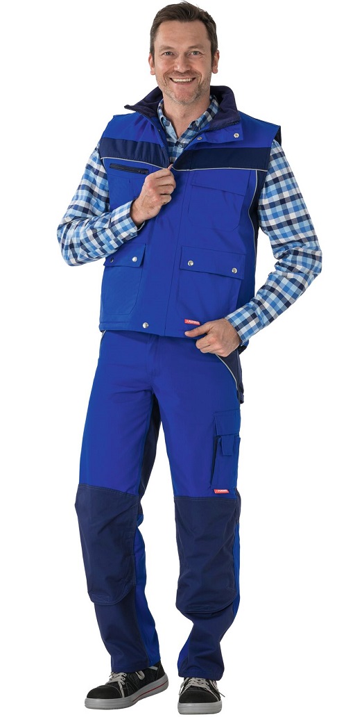 Breathable, water-repellent, glued seams, fleece collar, reflective piping as safety equipment, 1 breast pocket on the left with flap and Velcro fastener, double breast pocket on the right, mobile phone pocket on the right breast, 2 pen compartments, 2 side pockets, 2 patch side pockets, document pocket under the front flap, quilted lining, concealed front zip.