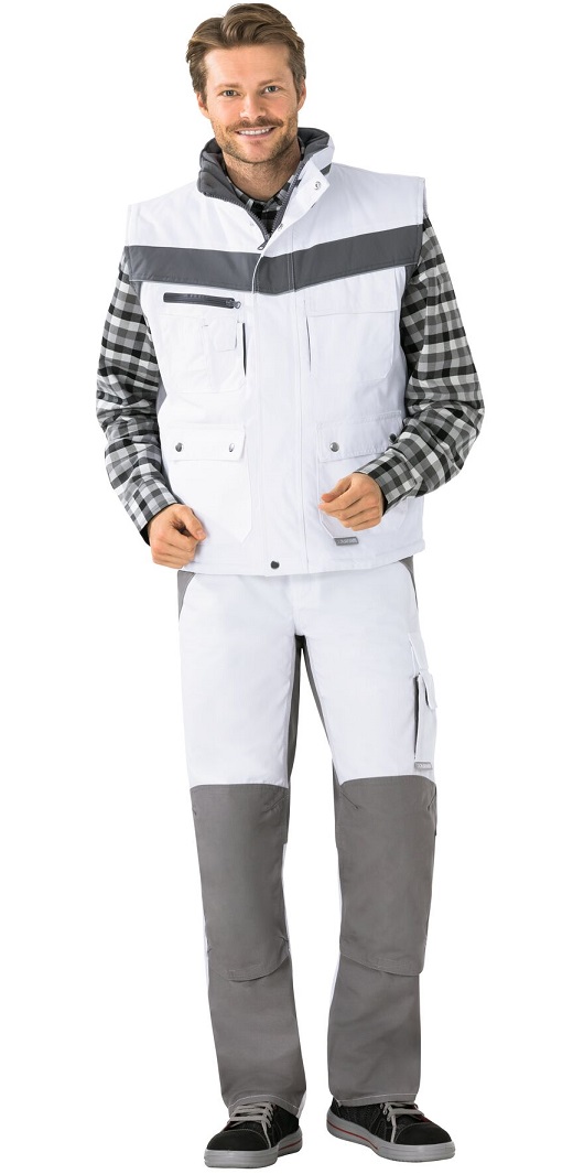 Breathable, water-repellent, glued seams, fleece collar, reflective piping as safety equipment, 1 breast pocket on the left with flap and Velcro fastener, double breast pocket on the right, mobile phone pocket on the right breast, 2 pen compartments, 2 side pockets, 2 patch side pockets, document pocket under the front flap, quilted lining, concealed front zip.
