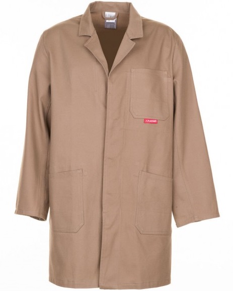 Individual for each job. Collar with lapel, 2 side pockets, 1 breast pocket, 1 inside pocket, concealed button placket, interchangeable buttons, back strap.
