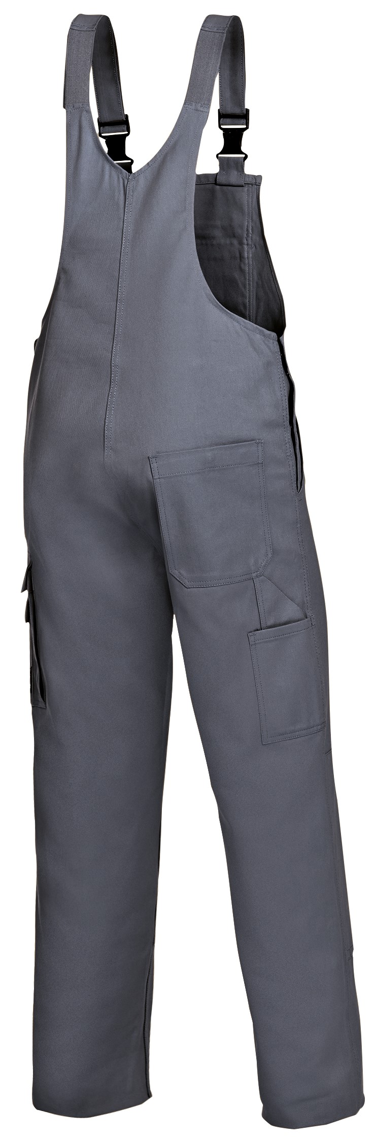 - fabric straps with rubber insert, plastic buckles, double bib pocket, 1 of them with concealed zipper