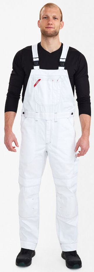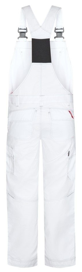 Functional dungarees with contrasting topstitching. High-cut back with wide elasticated waistband and adjustable straps. Chest pocket with compartments for pens and chest pocket with zipper. Optimum fit, ergonomically shaped knees. Adjustable waist size. Two spacious, slanted slit pockets at the front. Two back pockets with flap. Thigh pocket with flap and inserts for pens, for example. Free-hanging, reinforced folding rule pocket with extra compartments guarantees optimum freedom of movement. Adjustable hammer loop. Reinforced knee pocket with two adjustment options for knee pads. Reinforced hem on trouser legs for extra wear resistance. High visibility thanks to reflective piping in the middle of the back of the trouser legs. The trouser legs have an extra wide turn-up so that the inseam can be extended if required. For an extra-long leg length, simply open one hem, which conceals an additional hem.