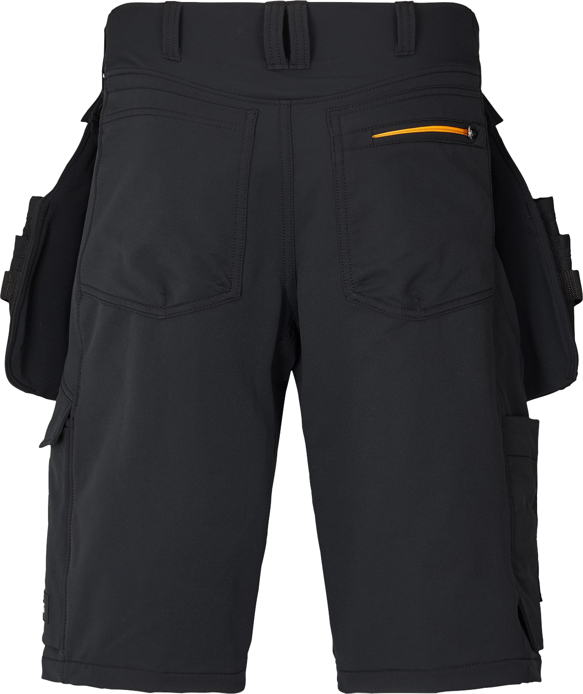 Flexible and comfortable work shorts in full stretch for 100% freedom of movement. Made from breathable, sweat-wicking and quick-drying material. Designed with removable hanging pockets for screws, nails or tools.