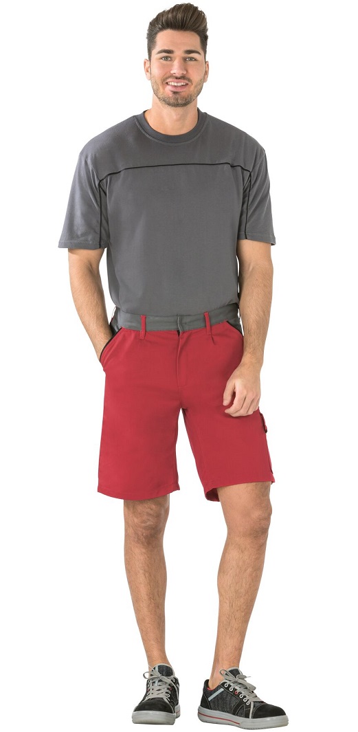 2 set-in pouch pockets, double ruler pocket, left thigh pocket with flap and Velcro fastener, mobile phone pocket, elastic waistband, 2 back pockets with flaps, zipper in trouser fly, pocket openings and pocket flaps with colored piping set off.