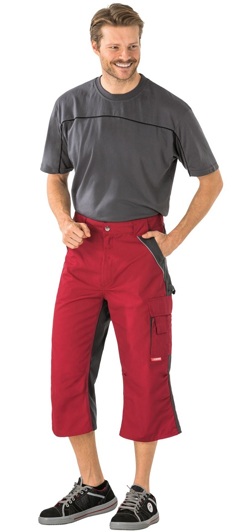 2 set-in pouch pockets, double ruler pocket on the right, thigh pocket on the left with flap and Velcro fastener, mobile phone pocket on the left, elasticated waistband, 2 hip pockets with flap and Velcro fastener, zip in trouser fly, reflective piping as safety equipment.