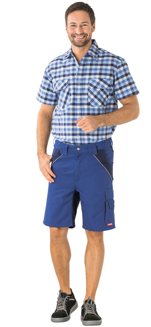 2 set-in pouch pockets, double ruler pocket on the right, thigh pocket on the left with flap and Velcro fastener, mobile phone pocket on the left, elasticated waistband, 2 hip pockets with flap and Velcro fastener, zip in trouser fly, reflective piping as safety equipment.