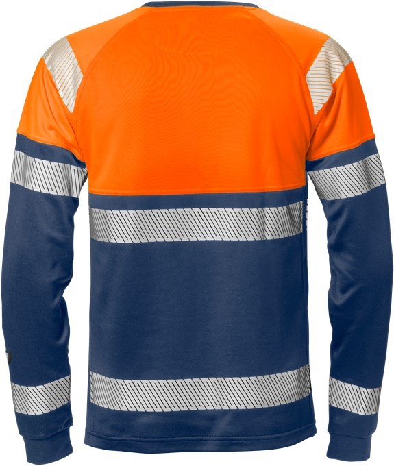 High visibility T-shirt with long sleeves and reflective stretch trim for greater freedom of movement. Made of a soft and comfortable material with cotton on the inside. Wicks moisture, dries quickly and is UV protected.