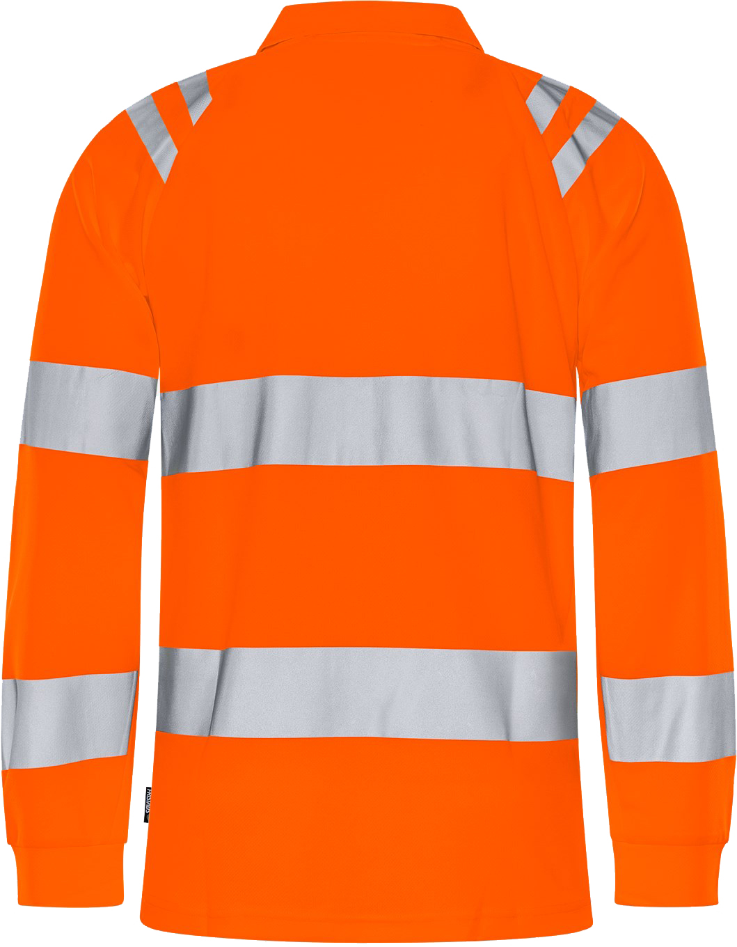 Long-sleeved high-vis polo shirt made from recycled material in a functional knit for improved breathability. The light and airy material offers high wearing comfort on warm working days. Concept: Trofta