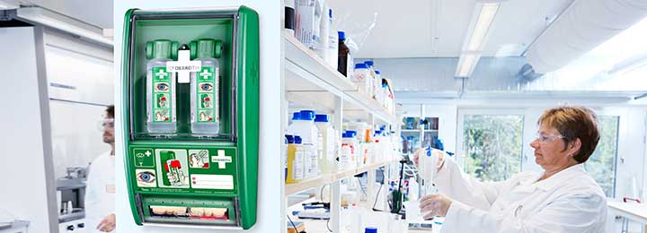 Simple and functional. The range includes consumer products for wound care and first aid for all types of workplaces for commercial customers (industry, trade, services, administration). The range has been supplemented by eye rinsing equipment and new products for wound care and cleaning.