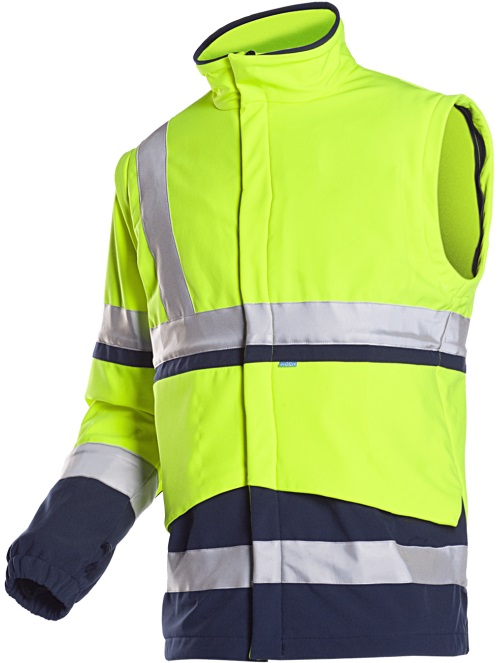 Looking for a work outfit for all weather conditions? With its removable softshell jacket, the Powell warning rain parka is perfectly tailored to your needs. This high-quality 4-in-1 model is made of a strong yet light, supple and breathable material. The rain parka with knitted cuffs on the sleeves has a removable hood, 2 pockets on the outside, 1 inside pocket and 1 Napoleon pocket. Thanks to the elastic drawstring waist and the elastic joint band with narrowing possibility you can fully adjust this light rain jacket to your body. The removable softshell jacket has 1 inside pocket and 2 side pockets. The detachable sleeves have an elastic band at the wrist. Standards: EN ISO 20471:2013 class 3 EN 343:2003+A1:2007 Class 3 (water resistance) EN 343:2003+A1:2007 Class 3 (vapour permeability) EN 14058:2004 (1.X.X.X.X) EN ISO 13688:2013 Other features: Fabric: Siopor® Ultra: 100% polyester fabric with 100% PU coating; ± 195 g/m² high collar detachable hood Zipper under velcro flap 2