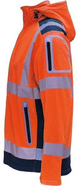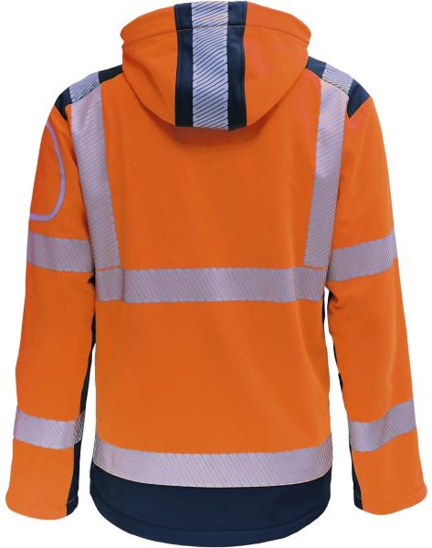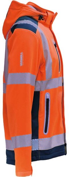 Product information "Vizwell VW177TO high visibility softshell jacket with hood fluorescent orange navy"