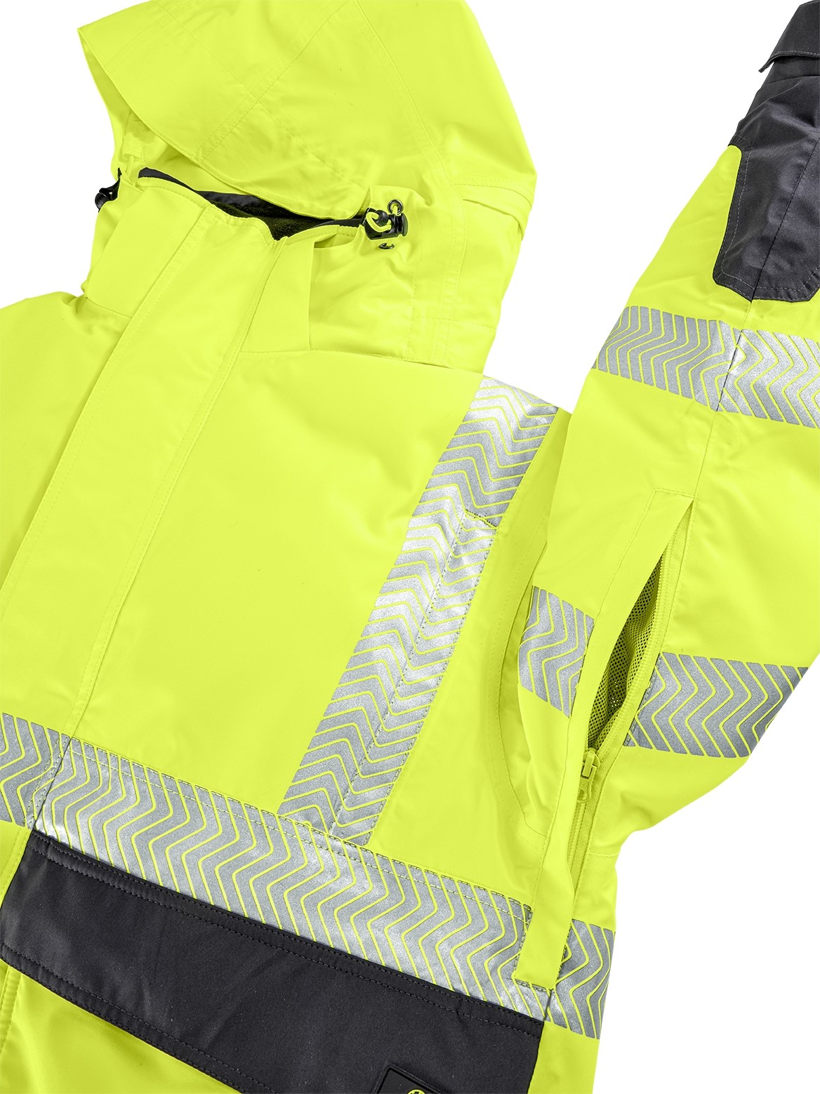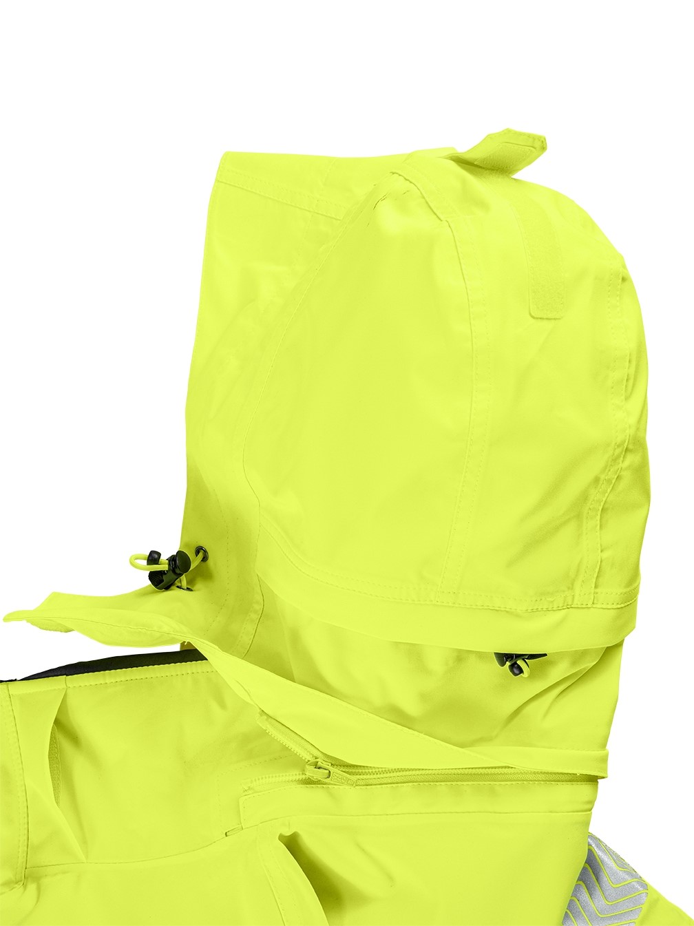 Applicable in all hazards due to limited visibility, the NEWARK blouson also protects against bad weather with its windproof and waterproof PTFE membrane. With the extremely light and breathable 4PROTECT®HEATING lining in combination with the Fellex® Fast Heat Insulation padding, the cold stays outside the blouson. High breathability also allows for a long wearing time. This is supported by functional details, such as a double-covered front zipper and a zip-off storm hood with various adjustment options. The dark-trimmed hem and cuffs protect against quick soiling, and the removable ID pocket offers thoughtful functionality. In addition, NEWARK offers the uncomplicated possibility of printing in different formats (e.g. 100 x 50 mm chest and 150 x 100 mm back) through a service zipper, without a devaluing influence on the high-visibility classification.