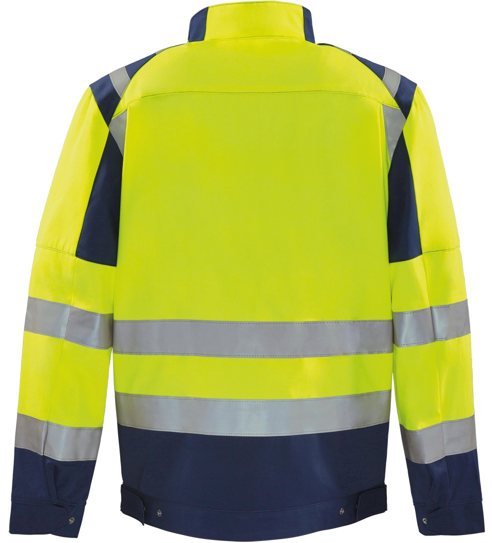 rofa NEWLINE jacket meets the standard for highly visible warning clothing and makes the wearer visible all around even in poor visibility and darkness. The material is particularly tear and abrasion resistant as well as water, oil and dirt repellent. Striking contrasting design elements and intelligently placed reflective stripes create a modern and dynamic appearance. The ergonomic cut, ventilation eyelets and the pleasantly soft material grip ensure a high level of wearing comfort. Innovative pocket solutions offer sufficient storage space and can be used individually.Design: stand-up collar, centre front with zip, front strip with press studs on collar and waistband, 2 breast pockets with Velcro, breast pocket right with patch pocket with flap and Velcro and pen opening, sleeve cuffs width-adjustable by press studs, 2 side pockets, inlaid folds in the back, waistband width-adjustable by press stud, ventilation eyelets, 50mm reflective stripes around torso and sleeves, 25mm reflecti