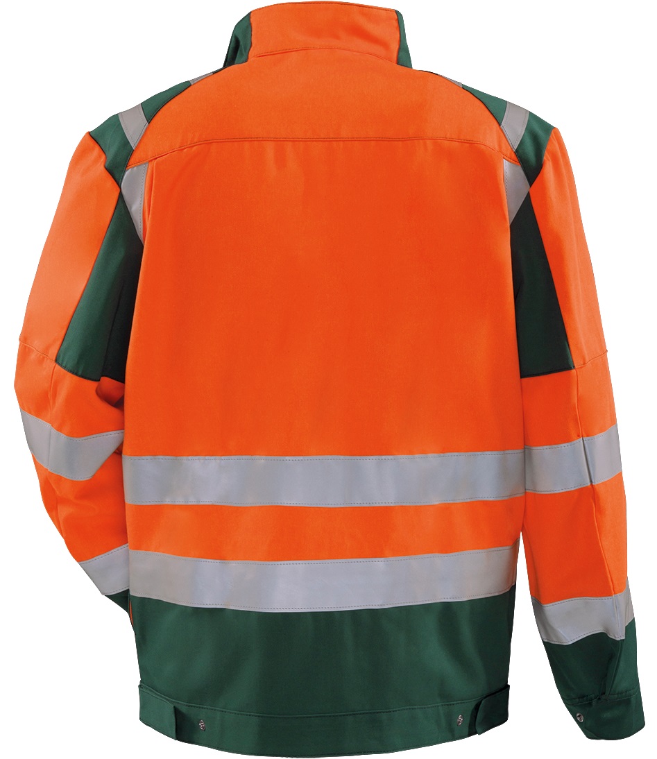 rofa NEWLINE jacket meets the standard for highly visible warning clothing and makes the wearer visible all around even in poor visibility and darkness. The material is particularly tear and abrasion resistant as well as water, oil and dirt repellent. Striking contrasting design elements and intelligently placed reflective stripes create a modern and dynamic appearance. The ergonomic cut, ventilation eyelets and the pleasantly soft material grip ensure a high level of wearing comfort. Innovative pocket solutions offer sufficient storage space and can be used individually.Design: stand-up collar, centre front with zip, front strip with press studs on collar and waistband, 2 breast pockets with Velcro, breast pocket right with patch pocket with flap and Velcro and pen opening, sleeve cuffs width-adjustable by press studs, 2 side pockets, inlaid folds in the back, waistband width-adjustable by press stud, ventilation eyelets, 50mm reflective stripes around torso and sleeves, 25mm reflecti