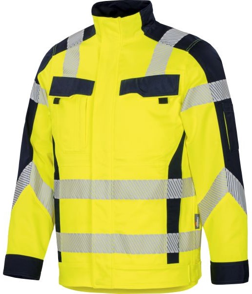 2 x 5 cm wide reflective stripes on torso and arms and 1 x 5 cm on shoulders