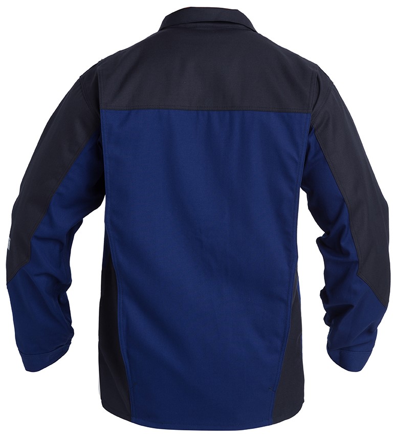 Jacket with double button placket and concealed press studs at the front. Chest pockets with flap and Velcro fastening, the right pocket with cell phone pocket, two inside pockets with zipper, two side pockets with flap and Velcro fastening, cuffs with Velcro fastening. A back pleat ensures better freedom of movement. Functional details on pockets and waistband prevent sparks from catching. Antistatic, flame-retardant and protective against aerosols, sprays and light splashes of chemicals.