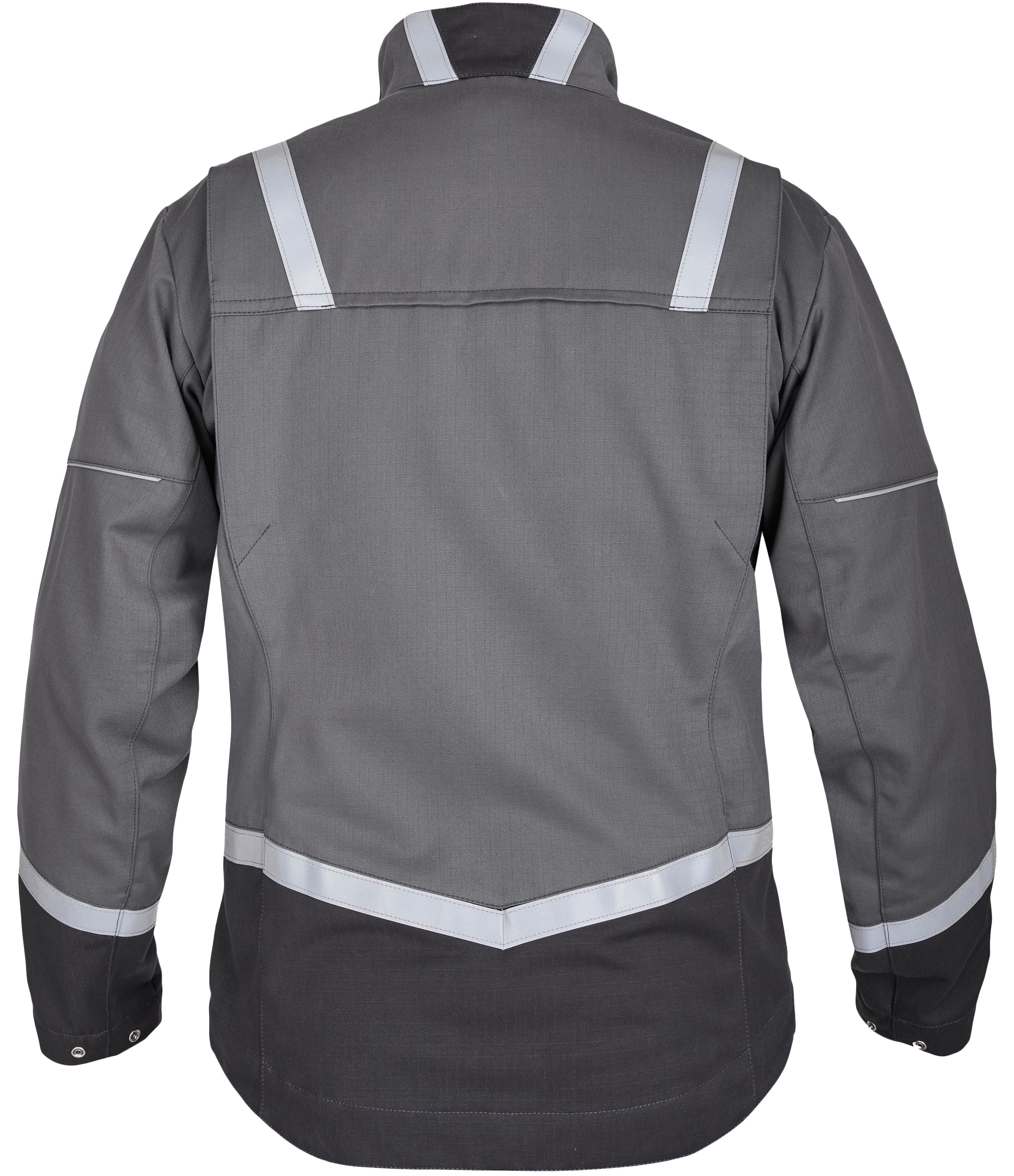 The ROFA MULTISIX jacket offers high protection in a wide range of dangerous situations and is flexible in use. The particularly pleasant grip of the material ensures a high level of wearing comfort in addition to an optimised ergonomic cut. The breathable material is inherently flame retardant and self-extinguishing. The dynamic look is determined by contrasting colours and reflective strips and piping on the shoulders, torso and sleeves. Various outside and inside pockets offer sufficient storage space. The movement pleats in the back, the extended back and the width-adjustable sleeve cuffs ensure freedom of movement and a comfortable fit.