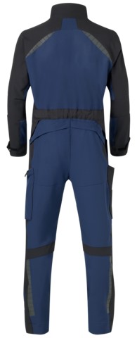 Coverall made from durable material. Black designer reflections, 4-way stretch and pre-shaped legs.