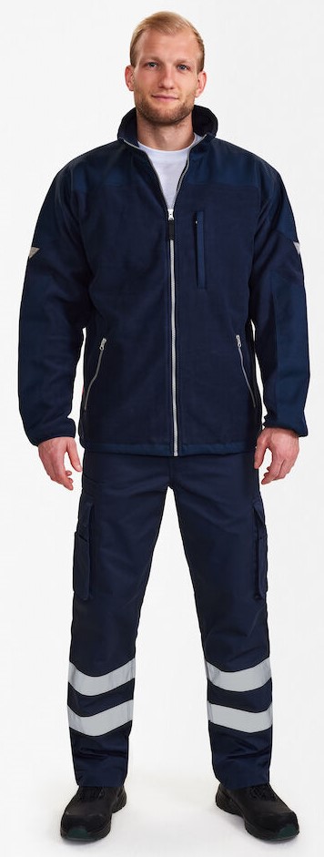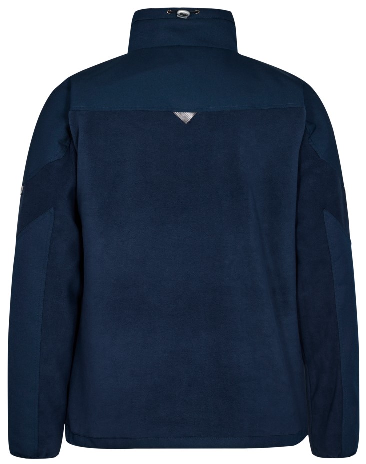 Fleece jacket with reinforced canvas shoulders and sleeves. Collar with fleece lining and cord stopper. Coarse front zipper in matching color design. Vertical breast pocket with zipper. Two side pockets with zipper. Slip lining on the inside.