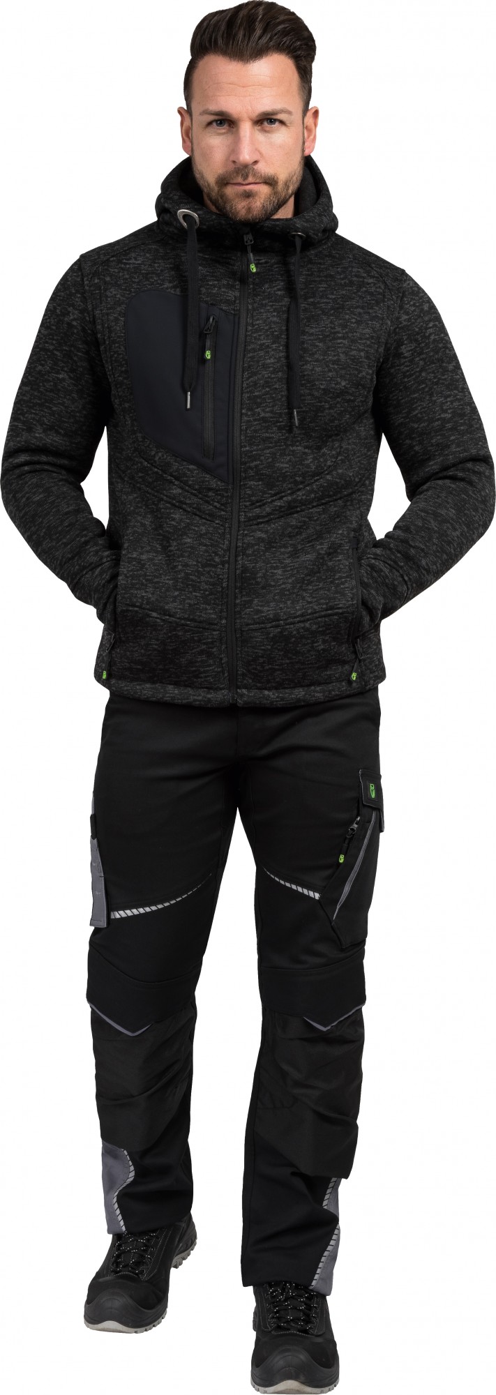 This stylish melange cardigan with sporty cut and modern design is an ideal companion for any occasion and season. The many pockets outside and inside provide storage space for items and other documents, but also ensure warm hands. With this functional jacket, with the cuddly soft roughened interior, you will feel absolutely comfortable. An adjustable hem closure ensures a perfect fit. The special features of this blended knit are the double dyeing and the high-quality knit "Cationic Thick Needle". The contrast chest pocket, the advantageously inserted dividing seams as well as the color concealed seams of hood and collar are definitely eye-catchers.