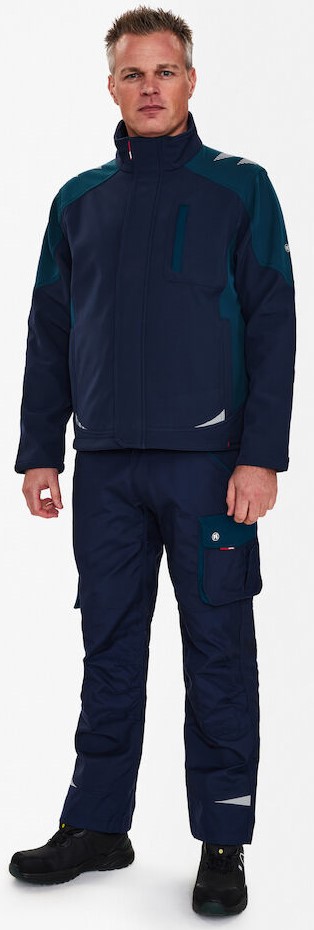 Functional softshell jacket with lots of details. Extended back section. Concealed zipper and Velcro fastener at the front. Reinforced elbows. Soft fleece fabric in the collar. Two spacious slit pockets and chest pocket, all with zippers. Two large inside pockets with Velcro fastener. Also inside pockets with zipper and divided pocket, e.g. for pens. Reflective stripes on the shoulders, front and back for increased visibility.