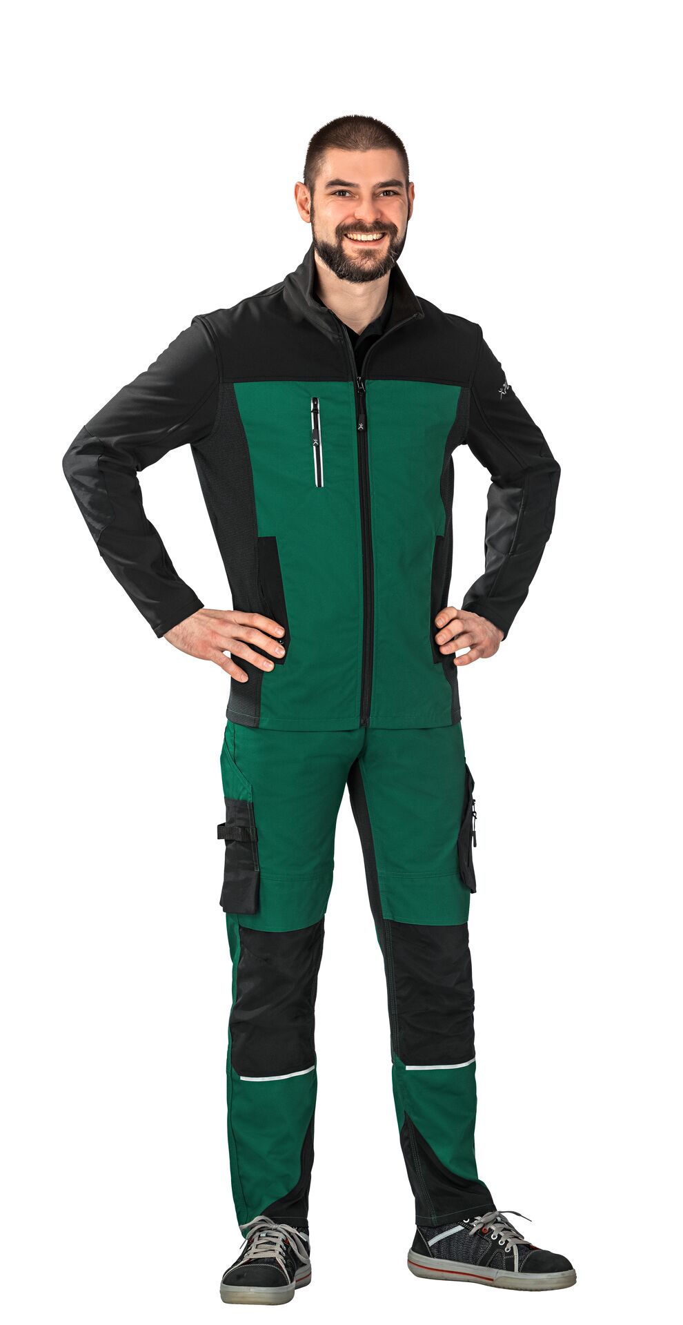 Contrast material Softshell outer layer: 96% polyester, 4% elastane TPU membrane, approx. 260 g/m²