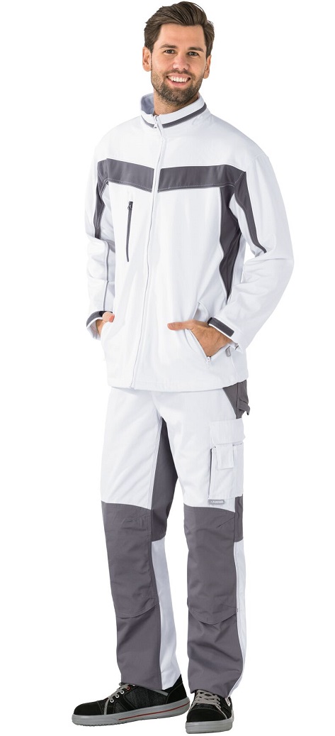 Waterprooferdi, breathable, 2 side pockets with zip, 1 breast pocket on the right with zip, full-length front zip, adjustable cuffs, reflective piping as safety feature.
