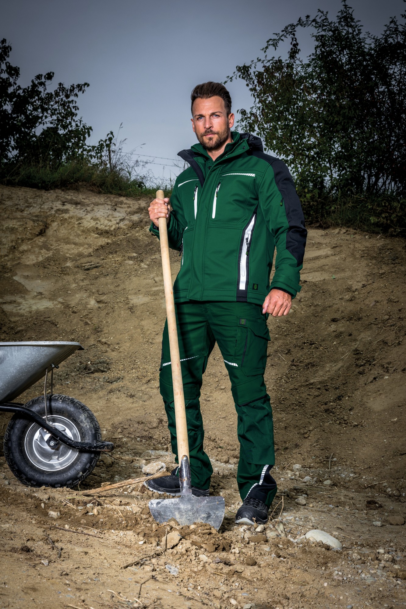 Outer material: 100 % polyester (twill) + TPU (membrane) + 100 % polyester (microfleece), 300 g/m²