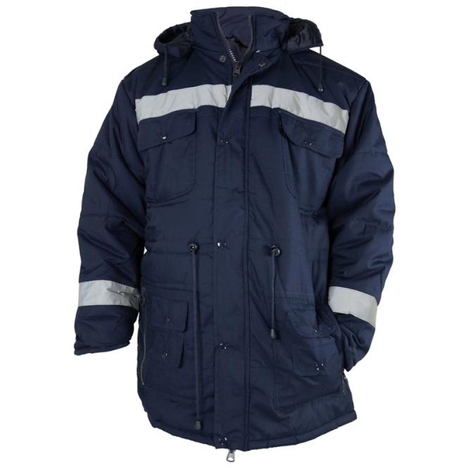 - Reflective stripes, knitted cuffs, 2 breast pockets with flap and press studs