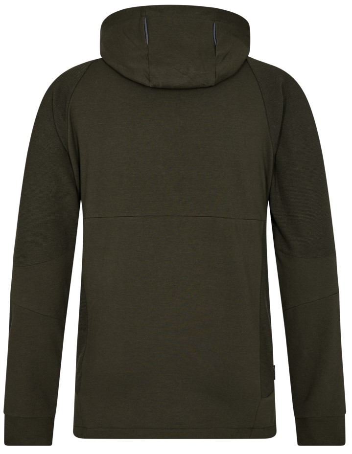 Comfortable hoodie made from lightweight and stretchy material. The hoodie has a brushed inside for increased comfort. Practical kangaroo pocket on the front with a water-repellent zipper. Extended back section. Hood with drawstring. Pre-washed material ensures that the item retains its shape. The hoodie has reflective piping on the front shoulders for better visibility.
