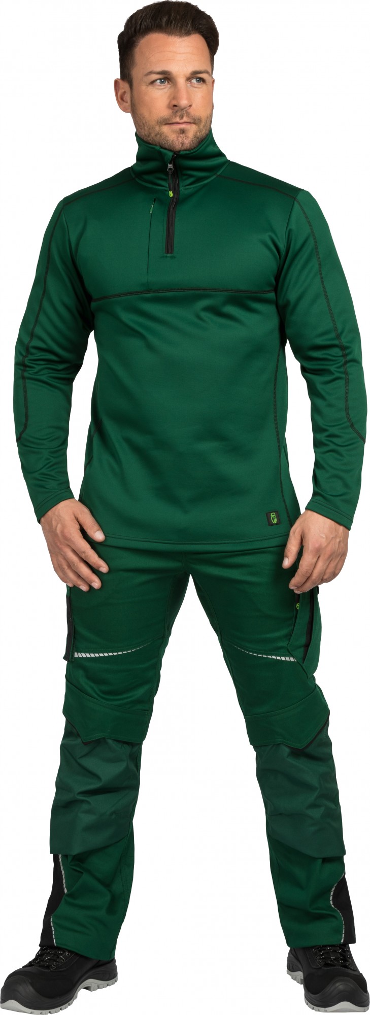 The long-sleeved shirt offers full function at all work! A flexible, breathable and quick-drying stretch COOLPASS fabric, is smooth on the outside and warm on the inside. This provides excellent warmth and comfort. The ergonomic shirt has a stand-up collar with short front zipper and chin guard, a practical chest pocket with zipper and colored flat seams that do not create friction on the skin.