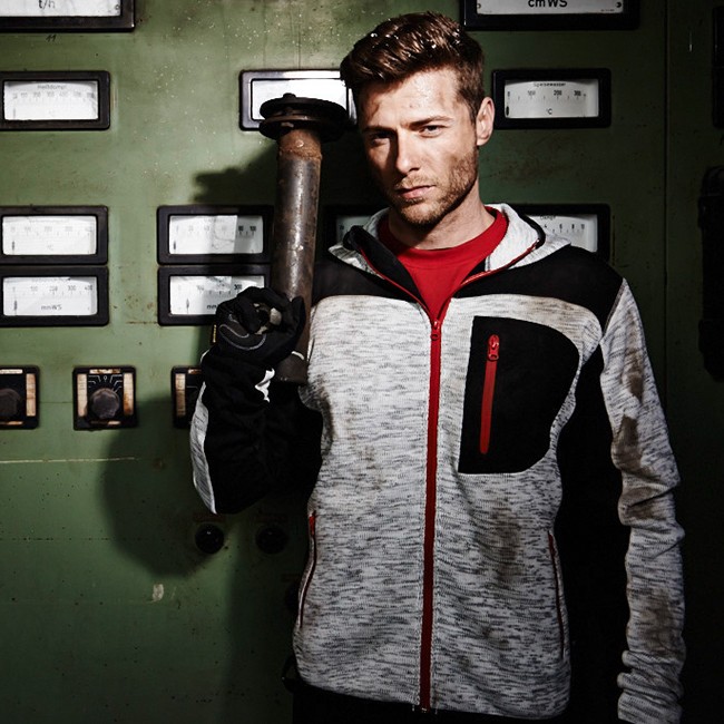 - sporty two-coloured cardigan with soft light inserts and fluffy inside