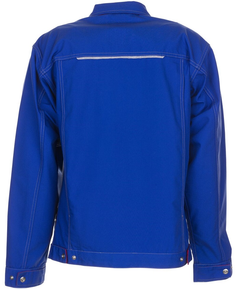 2 patch side pockets, 1 breast pocket left with flap and Velcro fastener, double breast pocket right, mobile phone pocket on the right breast, adjustable cuffs with press stud, turn down collar, waist width adjustable with press stud, 2 golf pleats in the back, reflective piping in the front and back area as safety equipment.