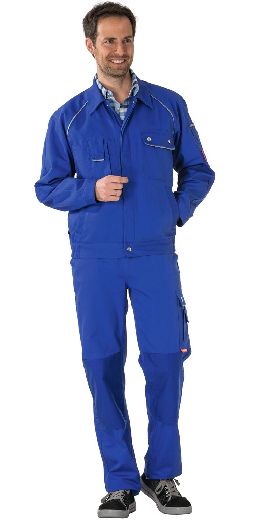 2 set-in Cordura® pouch pockets, reflective piping on sleeve insert and pocket flaps, 2 breast pockets, left with flap and press studs, right with additional mobile phone pocket, sleeve pocket left with double pencilelten compartments, elasticated waistband, concealed press stud front closure, adjustable cuffs with press studs, hanger in collar.