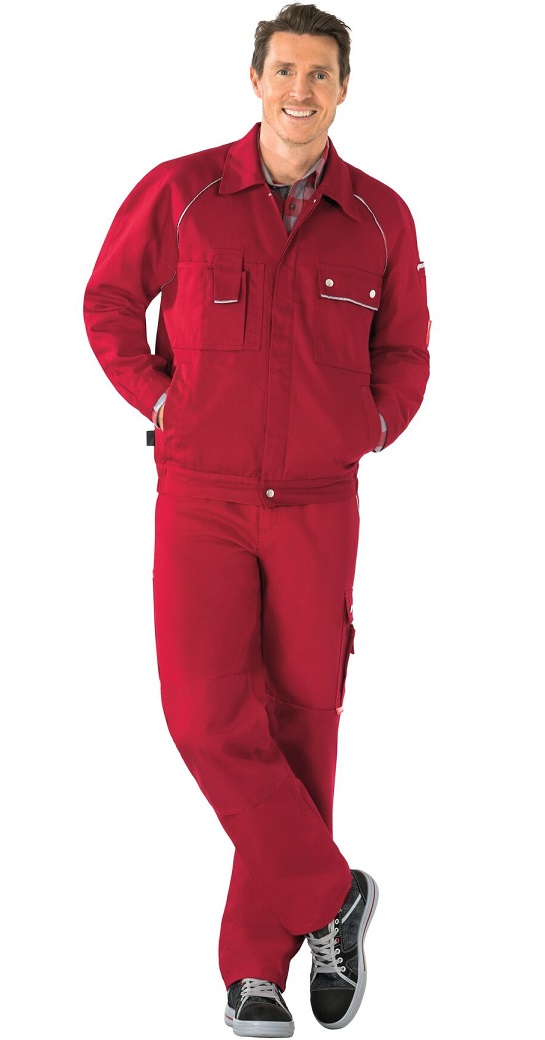 2 set-in Cordura® pouch pockets, reflective piping on sleeve insert and pocket flaps, 2 breast pockets, left with flap and press studs, right with additional mobile phone pocket, sleeve pocket left with double pencilelten compartments, elasticated waistband, concealed press stud front closure, adjustable cuffs with press studs, hanger in collar.
