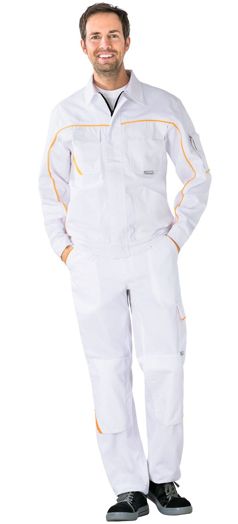 2 patch side pockets, 2 breast pockets with flap and Velcro closure, coloured applications on the right breast pocket, mobile phone pocket on the left sleeve, adjustable cuffs with Velcro closure, concealed front zip, elastic waistband, piping on saddle and sleeves, 2 golf pleats on the back.