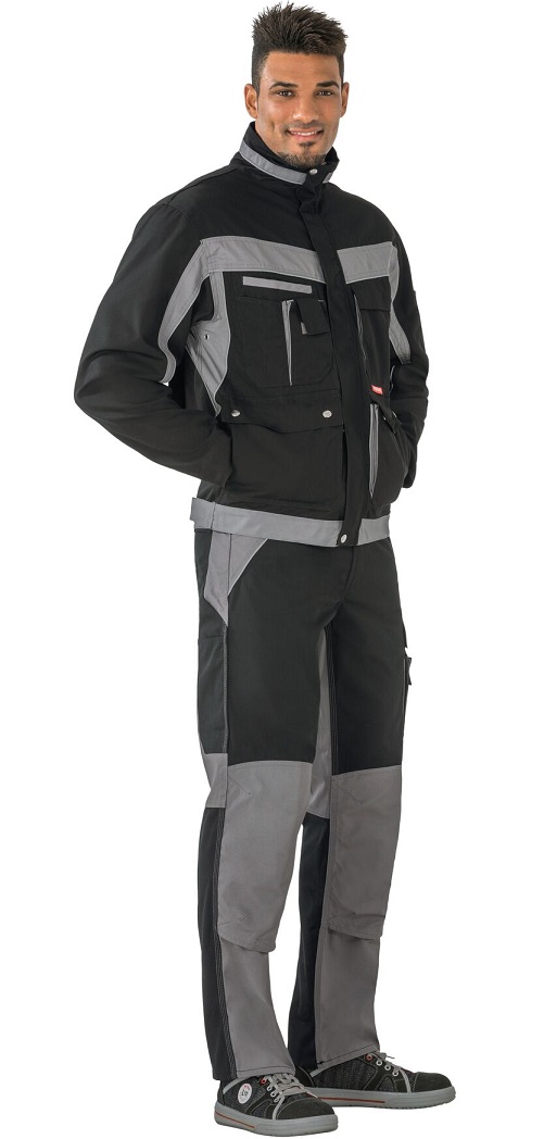 2 patch side pockets with flap and press studs, 1 breast pocket left with flap and Velcro fastener, double breast pocket right, mobile phone pocket on the right breast, 2 pen pockets, adjustable cuffs with press stud, concealed front zip, stand-up collar, adjustable waistband with Velcro tape, sleeve pocket left, reflective piping as safety equipment, 2 golf pleats in the back, ventilation slit in the back.