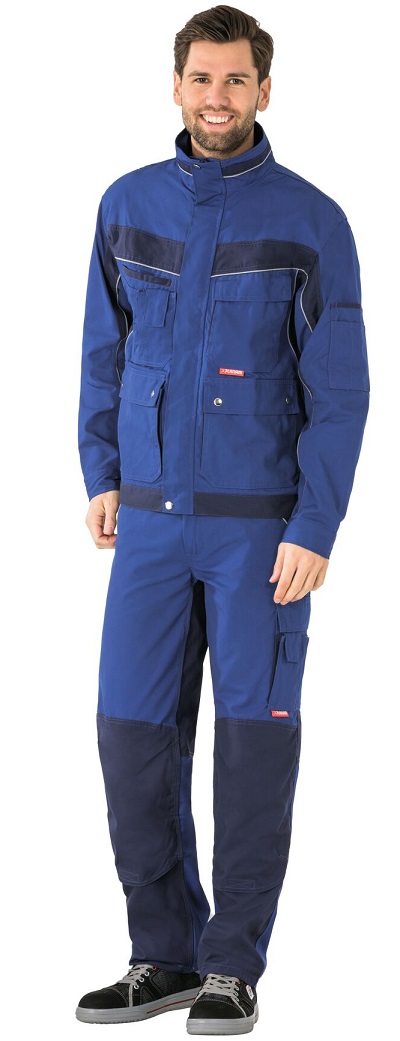 2 patch side pockets with flap and press studs, 1 breast pocket left with flap and Velcro fastener, double breast pocket right, mobile phone pocket on the right breast, 2 pen pockets, adjustable cuffs with press stud, concealed front zip, stand-up collar, adjustable waistband with Velcro tape, sleeve pocket left, reflective piping as safety equipment, 2 golf pleats in the back, ventilation slit in the back.