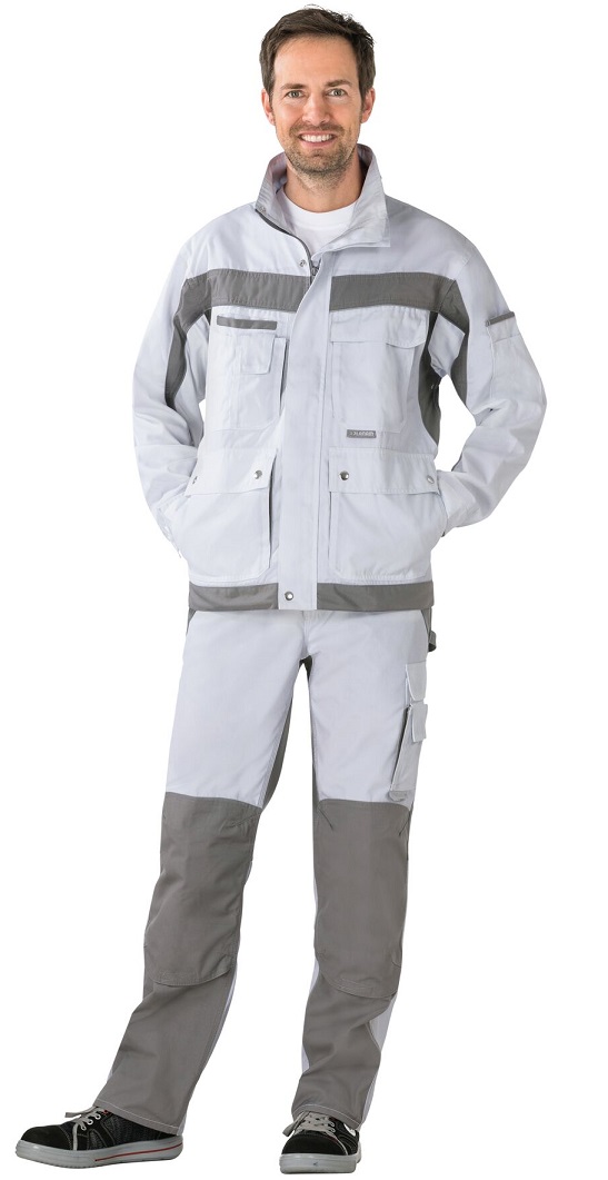 2 patch side pockets with flap and press studs, 1 breast pocket left with flap and Velcro fastener, double breast pocket right, mobile phone pocket on the right breast, 2 pen pockets, adjustable cuffs with press stud, concealed front zip, stand-up collar, adjustable waistband with Velcro tape, sleeve pocket left, reflective piping as safety equipment, 2 golf pleats in the back, ventilation slit in the back.