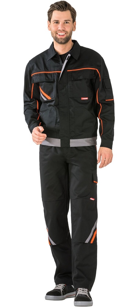 2 patch side pockets, 2 breast pockets with flap and Velcro, color applications on the right breast pocket, mobile phone pocket on the left sleeve, adjustable sleeve cuffs with Velcro, concealed front zip, elastic waistband, piping on saddle and sleeves, 2 golf pleats in the back.