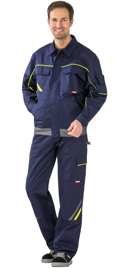 2 patch side pockets, 2 breast pockets with flap and Velcro, color applications on the right breast pocket, mobile phone pocket on the left sleeve, adjustable sleeve cuffs with Velcro, concealed front zip, elastic waistband, piping on saddle and sleeves, 2 golf pleats in the back.