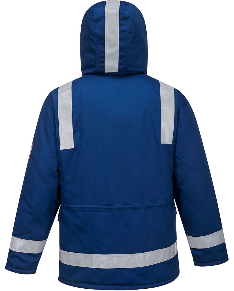 This flame retardant winter jacket is ideal for the offshore industry. Made from the same outer fabric as FR50, combined with thick insulation padding for extra heat. With double stitched reflective stripes on arms, body and shoulder. Conforms to all required EN standards, including the welding protection standard. With triple seams, concealed 2-way brass zipper and two diagonal breast pockets with flap. With drawcord for optimum fit and detachable hood.Flame retardant This industry-leading collection offers multi-standard protection for potentially explosive atmospheres. These state-of-the-art products are the result of many years of experience, state-of-the-art technology and market research. A commitment to the health, safety and comfort of the wearer can be seen in the wide range of products suitable for all weather conditions and applications.Product features:	Standards EN ISO 11612 (A1+A2 B1, C1, E2, F1) EN 1149 -5 EN 342 (0.451m2.K/W(B) X,2,X) EN ISO 11611 Class 2 (A1+A2) 	CE c