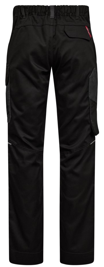 Two-tone work trousers with a modern cut that place great emphasis on functionality and a good fit. The work trousers are made from a fabric that is comfortable to wear in both warm and cold temperatures. The trousers have pre-shaped knees for maximum freedom of movement and a practical elasticated waistband at the back, which ensures a good fit and prevents the trousers from slipping during repetitive movements. The work trousers were developed with the industry in mind. They have all the necessary functional details as well as additional details that make them suitable for other sectors. The work trousers have a particularly large number of functional pockets, such as two spacious slanted front pockets. Back pocket with Velcro fastener. Thigh pocket with flap and separate cell phone pocket on the left side. On the right side there is a ruler pocket with loose hanging bottom and reinforcement. The trousers have 2 adjustment options for the insertion of knee pads and additional reinfor