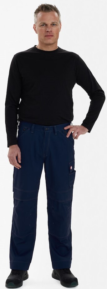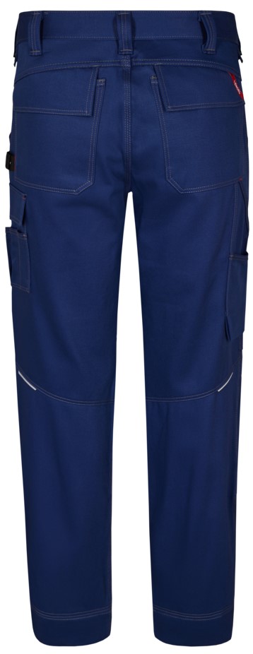 Functional craftsman trousers with contrasting topstitching. Optimum fit, ergonomically shaped knees. Two spacious, slanted slit pockets at the front. Two back pockets with flap. Thigh pocket with flap and inserts for pens, for example. Free-hanging, reinforced folding rule pocket with extra compartments guarantees optimum freedom of movement. Adjustable hammer loop. Reinforced knee pockets with two adjustment options for knee pads. Reinforced hem on trouser legs for extra wear resistance. High visibility thanks to reflective piping in the middle of the back of the trouser legs. The pants have an extra wide turn-up so that the crotch length can be extended if required. For additional leg length, only one hem needs to be unzipped, behind which there is an additional hem.