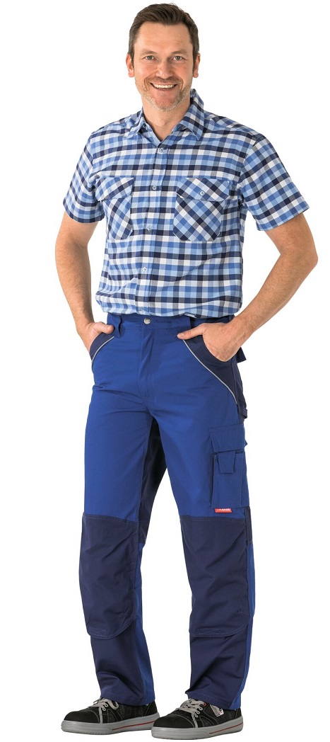 This article, in conjunction with a knee PLANAMpad (Art. No. 9901027), is certified as knee protection according to EN 14404 Type 2, Level 1. 2 set-in pouch pockets, 2 patch knee pockets, double ruler pocket on the right, thigh pocket on the left with flap and Velcro fastener, mobile phone pocket on the left, elastic waistband, 2 hip pockets with flaps and Velcro fastener, zip in trouser fly, reflective piping as safety equipment.