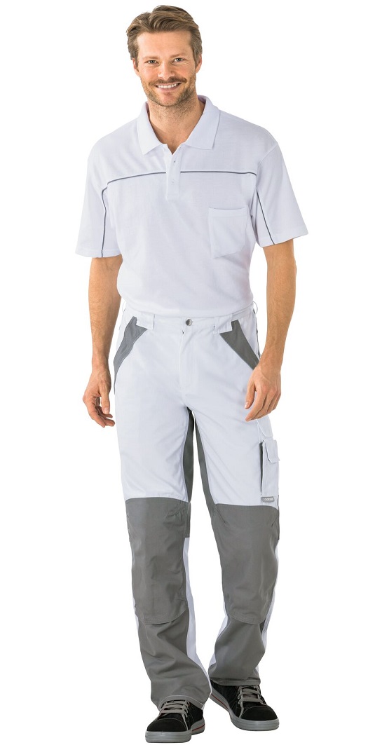 This article, in conjunction with a knee PLANAMpad (Art. No. 9901027), is certified as knee protection according to EN 14404 Type 2, Level 1. 2 set-in pouch pockets, 2 patch knee pockets, double ruler pocket on the right, thigh pocket on the left with flap and Velcro fastener, mobile phone pocket on the left, elastic waistband, 2 hip pockets with flaps and Velcro fastener, zip in trouser fly, reflective piping as safety equipment.