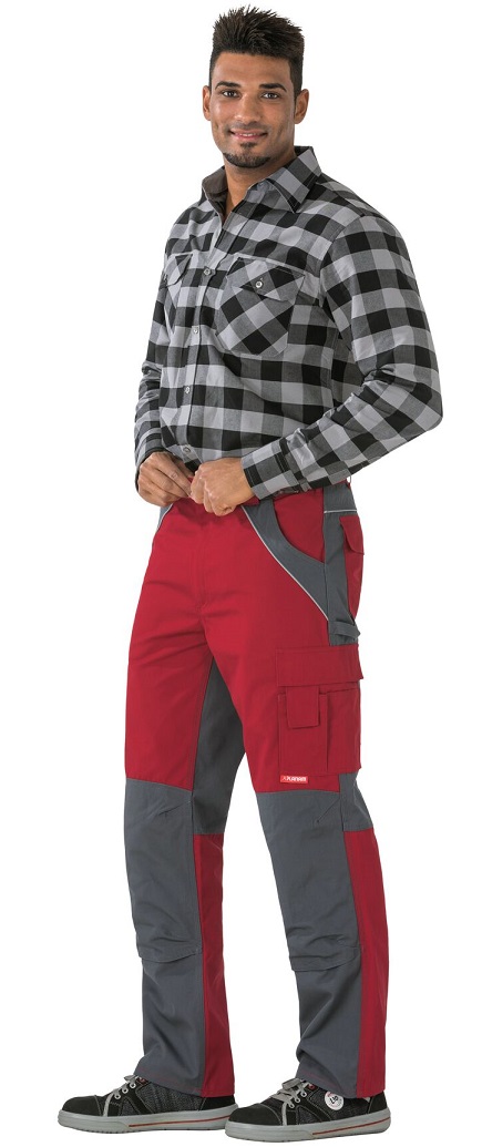 This article, in conjunction with a knee PLANAMpad (Art. No. 9901027), is certified as knee protection according to EN 14404 Type 2, Level 1. 2 set-in pouch pockets, 2 patch knee pockets, double ruler pocket on the right, thigh pocket on the left with flap and Velcro fastener, mobile phone pocket on the left, elastic waistband, 2 hip pockets with flaps and Velcro fastener, zip in trouser fly, reflective piping as safety equipment.