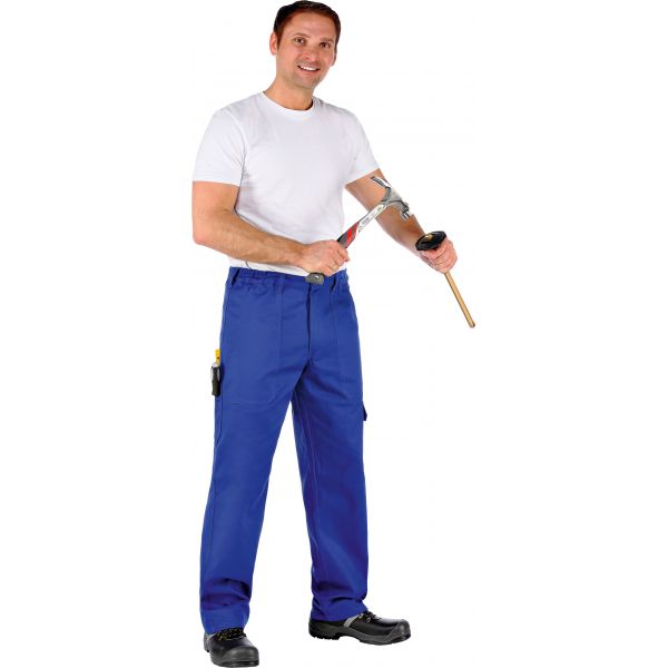 Wellwork Protection, robust, classic cotton - high durability, skin-friendly, breathable, temperature compensating and washable up to 60 °C, waistband with elastic and 7 belt loops, fly with high quality metal zipper,pockets: 2 patch pockets,back pocket with button, double folding rule pocket, thigh pocket with box pleat and flap, closable with 2x Velcro