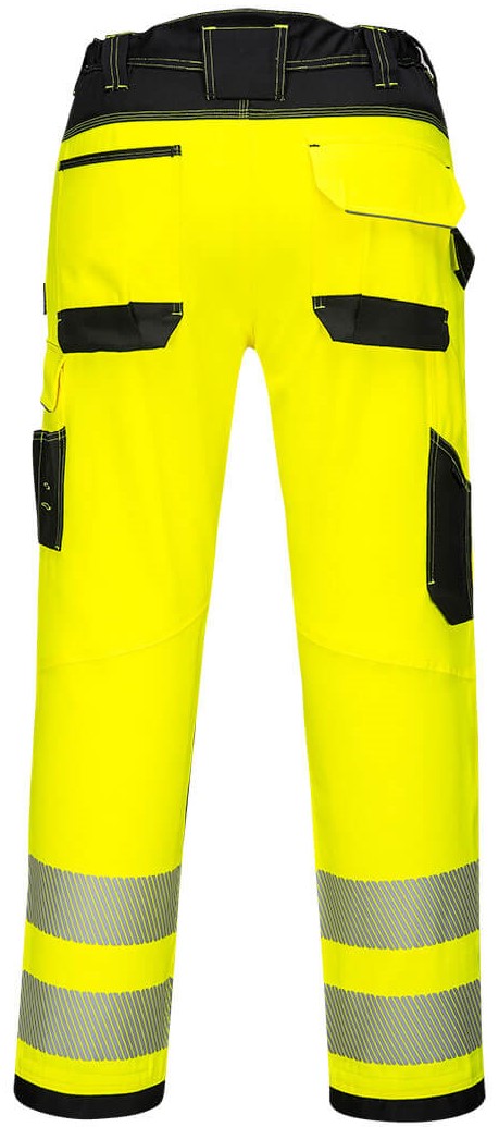 Innovative lightweight high-visibility stretch trousers with high-performance two-way stretch fabric for maximum freedom of movement on the job. Clever features include flexible HiVisTex Pro segmented reflective tape, knee pad pockets and an easy-access multi-use thigh pocket for secure storage of phone, keys and tools. Oxford fabric for reinforcement in key abrasion areas and triple stitching throughout for maximum durability.