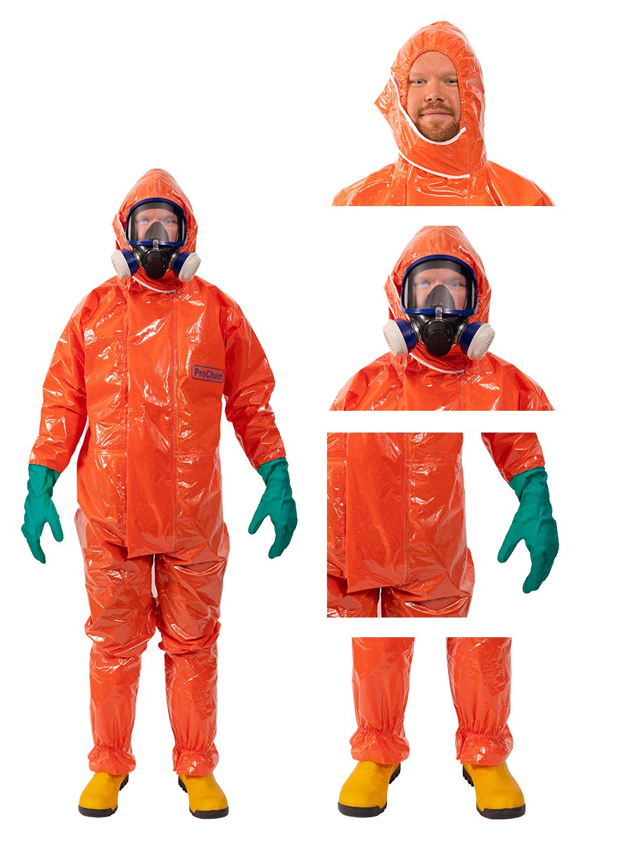 The ProChem® I is primarily used in industrial and tank cleaning, for inspection work and by fire and rescue services. Elasticated cuffs, legs and hood as well as an elasticated waist ensure an optimum fit and the generously cut crotch area provides optimum freedom of movement. The ergonomic hood and the raised double cover flap with Velcro fastening over the zipper up to the chin offer additional protection. Elastic thumb loops prevent the sleeves from riding up when working overhead.